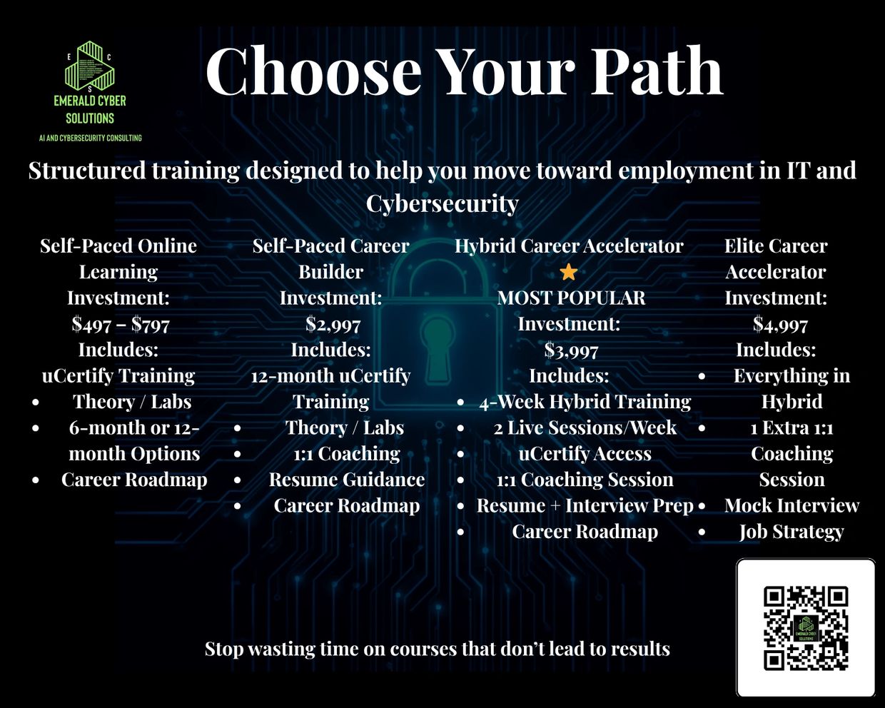 Emerald Cyber Solutions Academy has helped hundreds of students save time by providing a clear IT and cybersecurity strategy—so they can avoid wasting time on courses or training that do not align with their career goals.